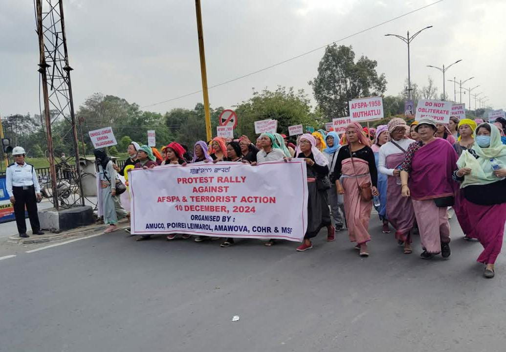 In a massive show of unity, lakhs of people participated in the “Protest Rally Against AFSPA and Terrorist Action,” organized by AMUCO (All Manipur United Clubs Organisation) in collaboration with POIREI LEIMAROL, AMAWOVA, COHR, and MSF.