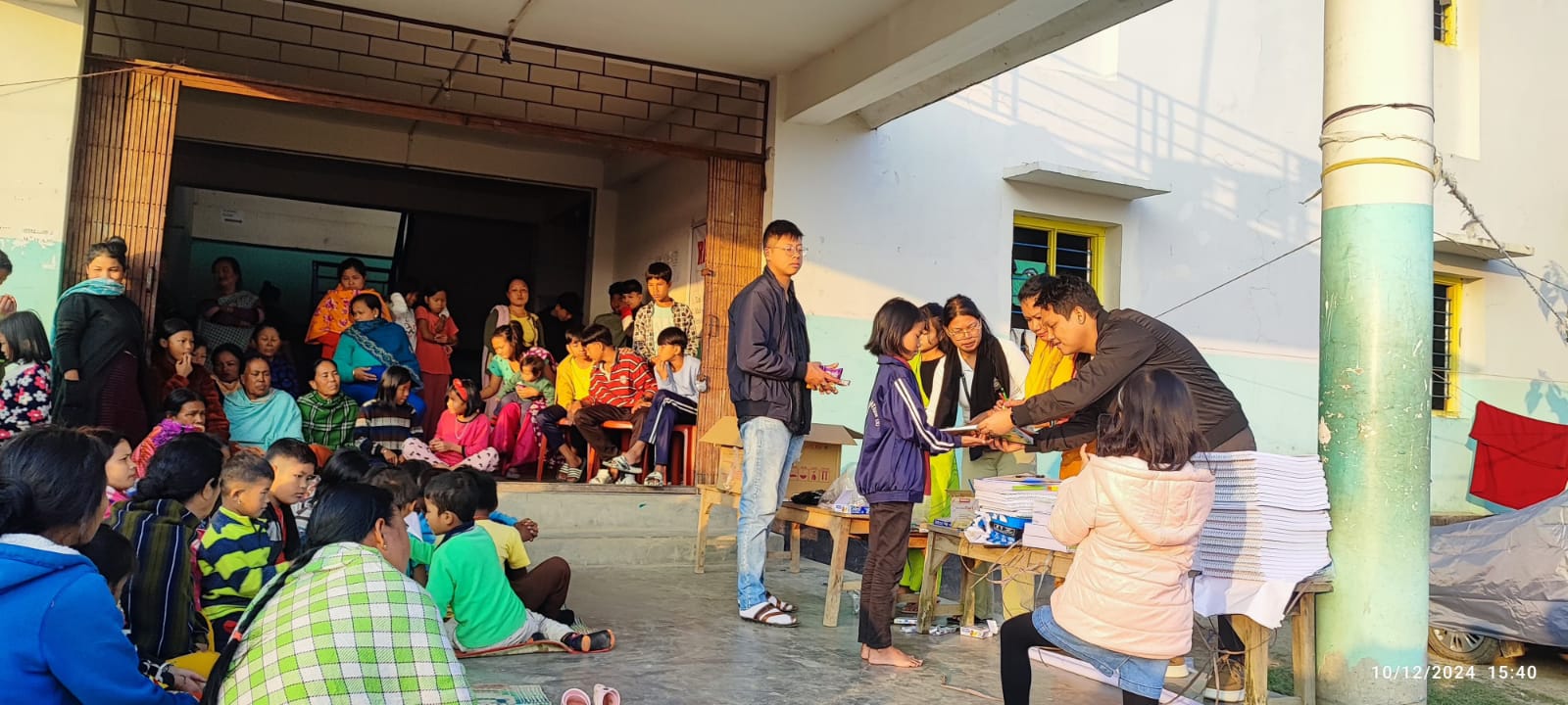 The Nouwa Marup team, led by Mr. Suraj Nepram and supported by Mrs. Tejbala and Ms. Aarohi, distributed educational materials such as books and pens along with food items to the camp residents. Addressing the students, Mr. Suraj emphasized the importance of continuing education despite the ongoing crisis and assured that Nouwa Marup would extend its support whenever needed.