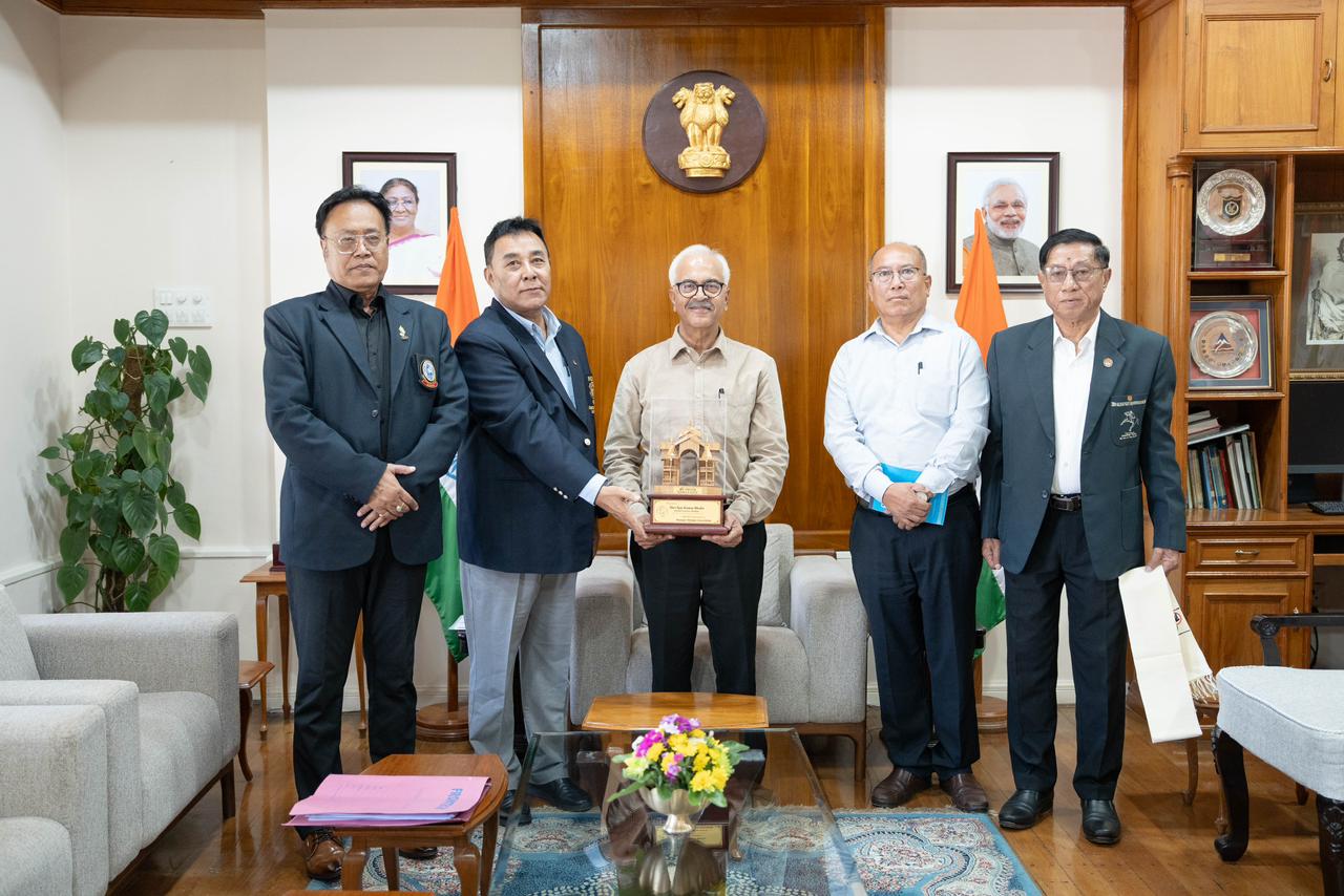 Imphal, November 10, 2025: A team from the Manipur Olympic Association led by its President, Sunil Elangbam, met Governor Ajay Kumar Bhalla at Raj Bhavan, Imphal. During the meeting, they discussed ongoing activities and initiatives for the development and promotion of sports in the state. The Governor appreciated the efforts of the Association.