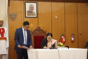 Smt. Nungshitombi Athokpam was sworn in as the State Information Commissioner of Manipur on Thursday at a ceremony held at the Durbar Hall, Raj Bhavan, Imphal. Governor Shri Ajay Kumar Bhalla administered the oath of office.